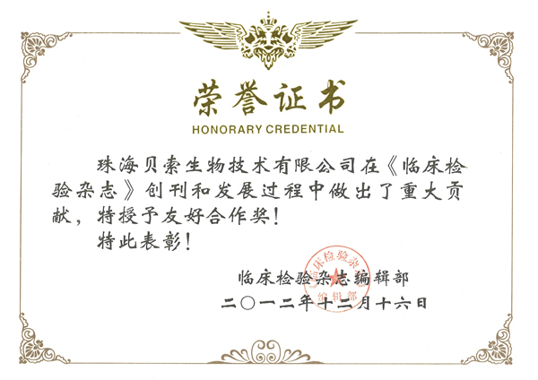 貝索企業(yè)董事長(zhǎng)倪堯志,總經(jīng)理陳曉林應(yīng)邀參加了該慶典,與參會(huì)的《臨床檢驗(yàn)雜志》100多名全國(guó)編委進(jìn)行了深入交流,并獲得《臨床檢驗(yàn)雜志》頒發(fā)的友好合作獎(jiǎng),獎(jiǎng)勵(lì)貝索企業(yè)為《臨床檢驗(yàn)雜志》創(chuàng)刊和發(fā)展中做出的重大貢獻(xiàn)!