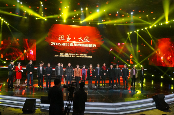 “微善匯聚,愛暖人心”。2015年2月4日,“微善·大愛”2015湖北省年度慈善盛典晚會,在湖北省廣播電視臺800平米演播廳舉行。省人大常委會副主任趙斌、省政府副省長甘榮坤、省委副秘書長胡菊萍及300余名社會各界代表出席晚會。晚會通過一個個平凡人,一件件平凡事,一點點愛心的匯聚,向社會各界展示湖北省慈善總會的工作,答謝長期以來支持湖北慈善事業(yè)的愛心單位和人士。