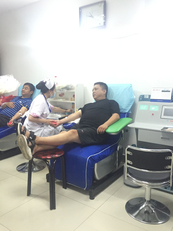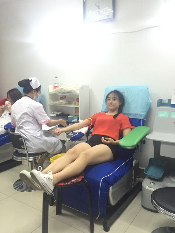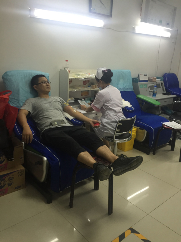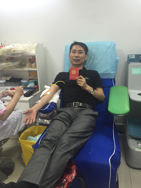 活動進行的兩個小時,最終有16名員工通過體檢,光榮獻血,其中8人捐獻血液400毫升,6人捐獻血液300毫升,2人捐獻血液200毫升,捐獻血液共計27個單位,5400毫升。特別值得表揚的是,來自財務部的李婭是16位中唯一的女性,盡管身材嬌小,而且是第一次參加獻血,表現(xiàn)得特別勇敢,主動要求獻血300ml。來自工程部的李成林和銷售部的文斌作為無償獻血的常客,都是5次奉獻了愛心。