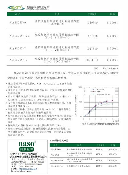 【產(chǎn)品概述】ALyS505N-0 是專為細胞免疫治療研究而開發(fā), 不含有任何動物蛋白質(zhì)成分,含有重組或醫(yī)療級人類蛋白質(zhì)的無血清細胞培養(yǎng)基。對人類外周血T 淋巴細胞具有高增殖性,適用于CIK、DC、LAK、CTL 等T 細胞的擴增與活化,是細胞免疫治療用最佳培養(yǎng)基。