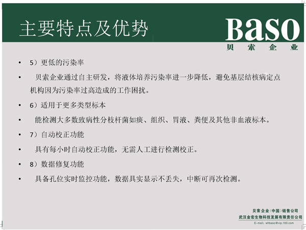 貝索全自動(dòng)分枝桿菌培養(yǎng)檢測(cè)儀充分考慮國(guó)內(nèi)現(xiàn)狀,根據(jù)客戶需求,分為BS-100型、BS-400型、BS-1000型,滿足不同標(biāo)本量客戶需求,為廣大基層醫(yī)療機(jī)構(gòu)---基層綜合醫(yī)院、基層專科醫(yī)院、基層定點(diǎn)機(jī)構(gòu)、基層結(jié)核病實(shí)驗(yàn)室提供分枝桿菌液體快速檢測(cè)平臺(tái)及服務(wù)。
