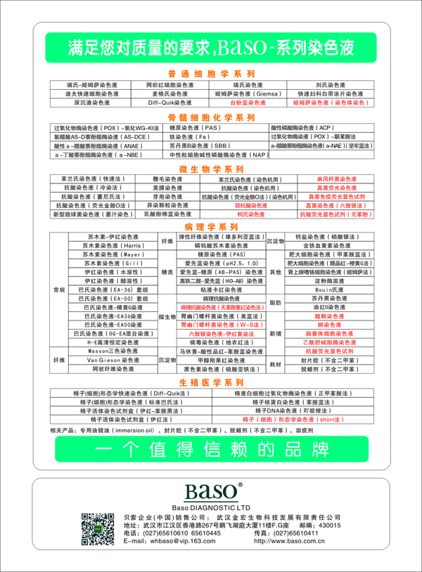 染色液-我選貝索-彩頁(yè)資料-貝索企業(yè):珠海貝索生物技術(shù)有限公司、武漢貝索醫(yī)療器械有限公司、武漢金宏生物科技發(fā)展有限責(zé)任公司、珠海貝索細(xì)胞科學(xué)技術(shù)有限公司、江蘇貝索生物工程有限公司